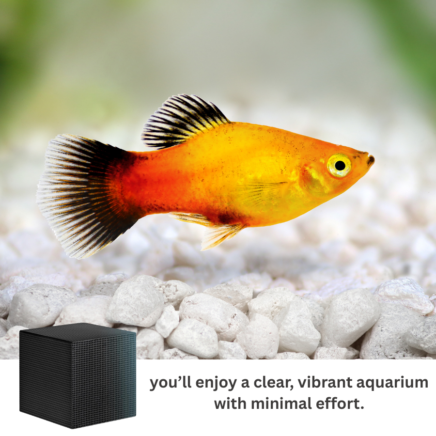 Our Carbon Cube Filters not only improve the water quality in your aquarium but also help maintain a stable, safe environment for your fish. Free from harmful chemicals and additives, these filters are a great choice for aquariums of all sizes. Their natural composition ensures that they won’t harm your aquatic life, while providing a reliable solution for maintaining clean water. Enjoy peace of mind knowing your fish are swimming in the cleanest, most comfortable water possible.